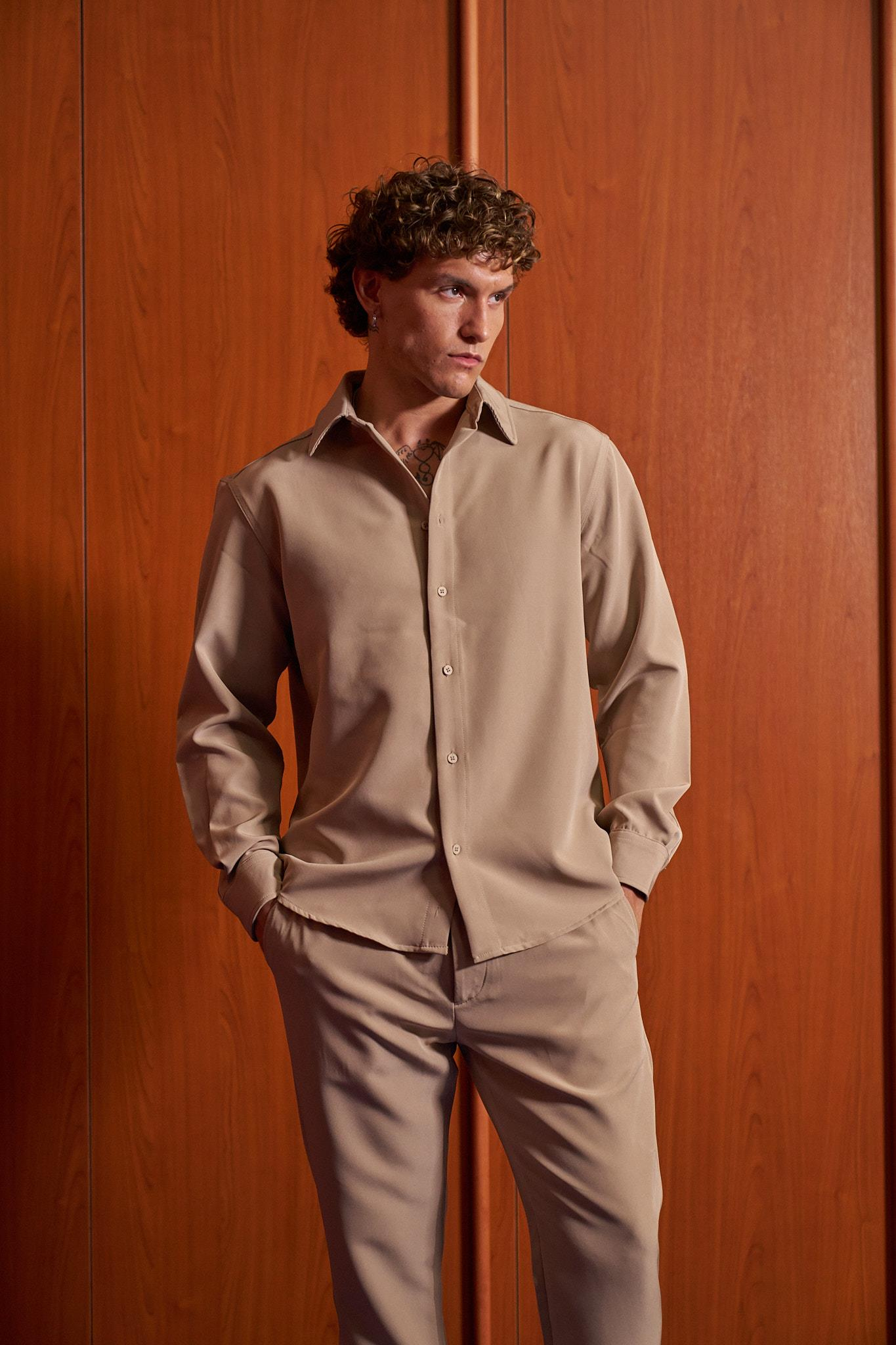 Lando Lycralı Gömlek Bej (25ksgom002)